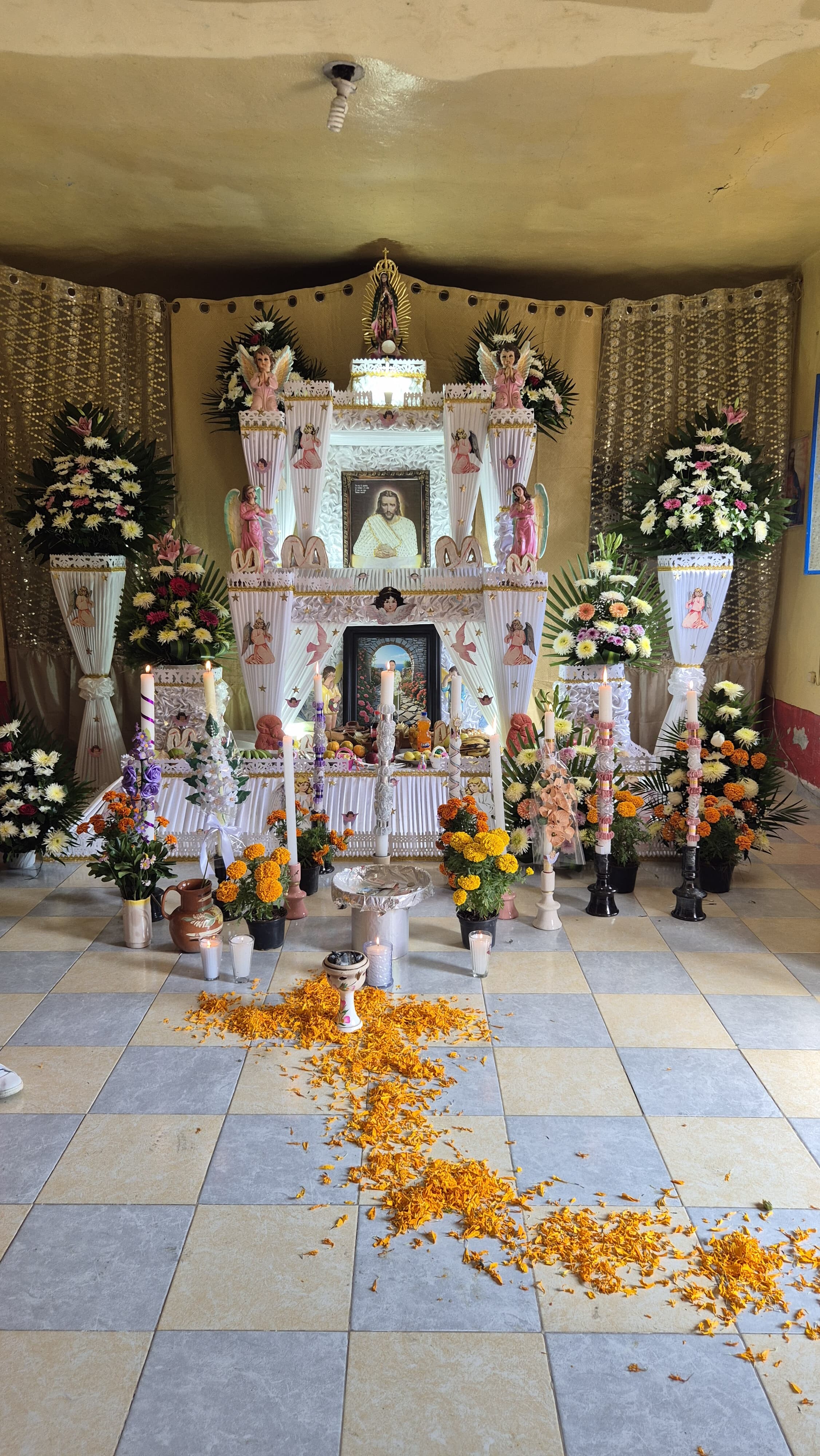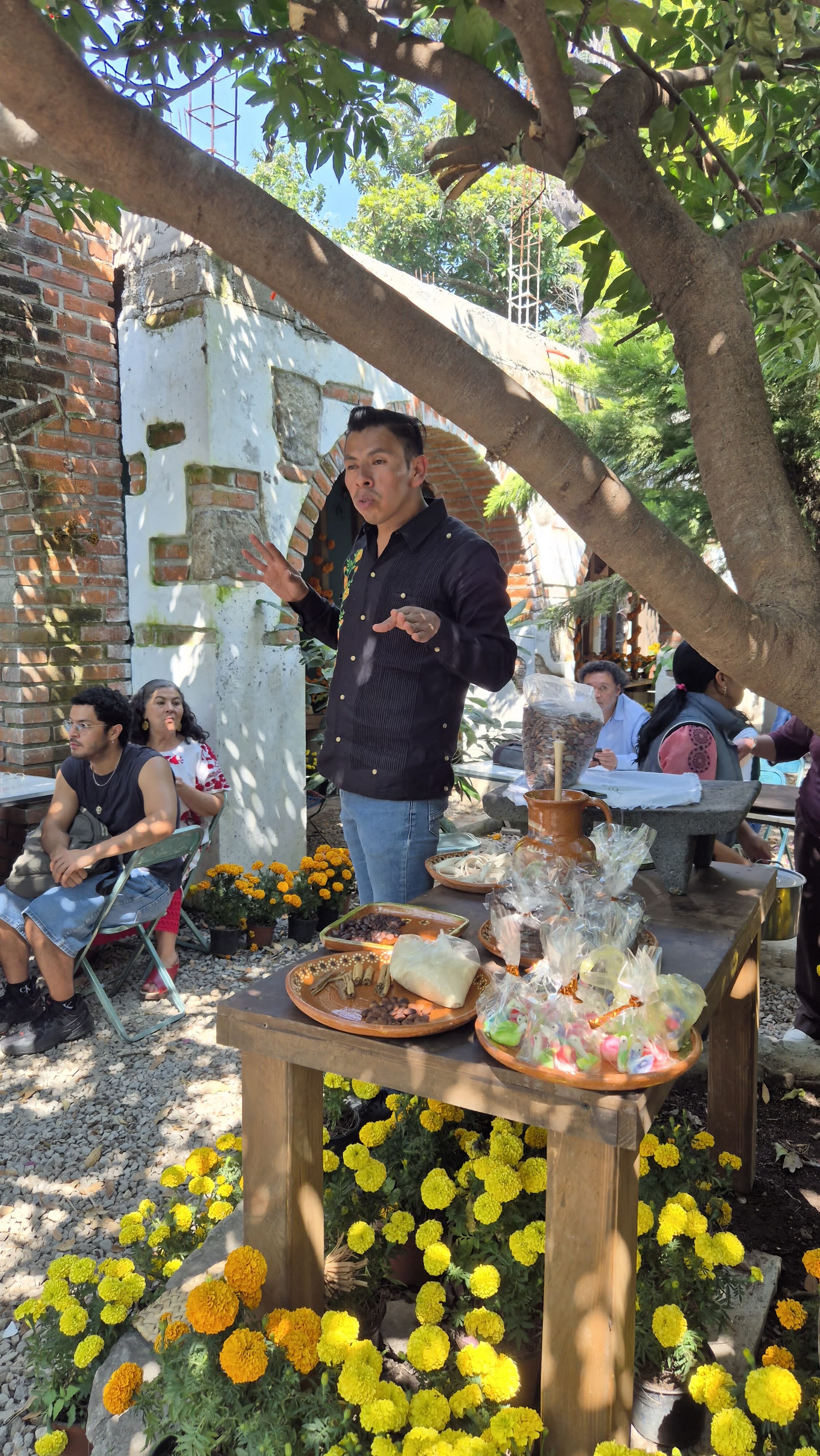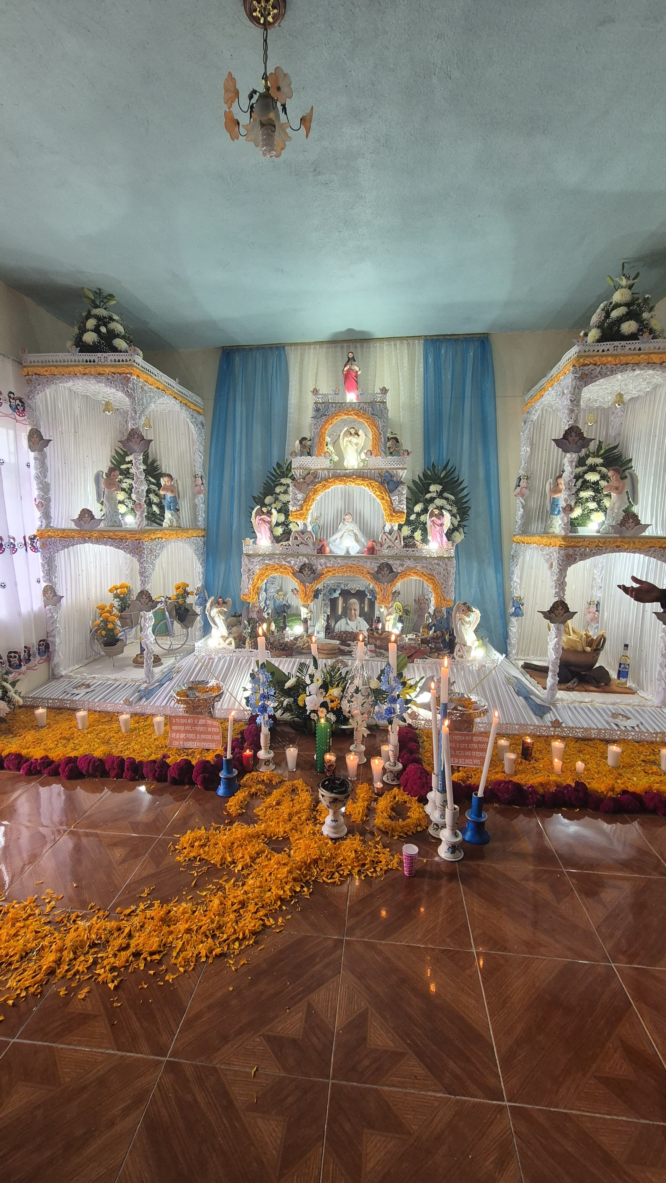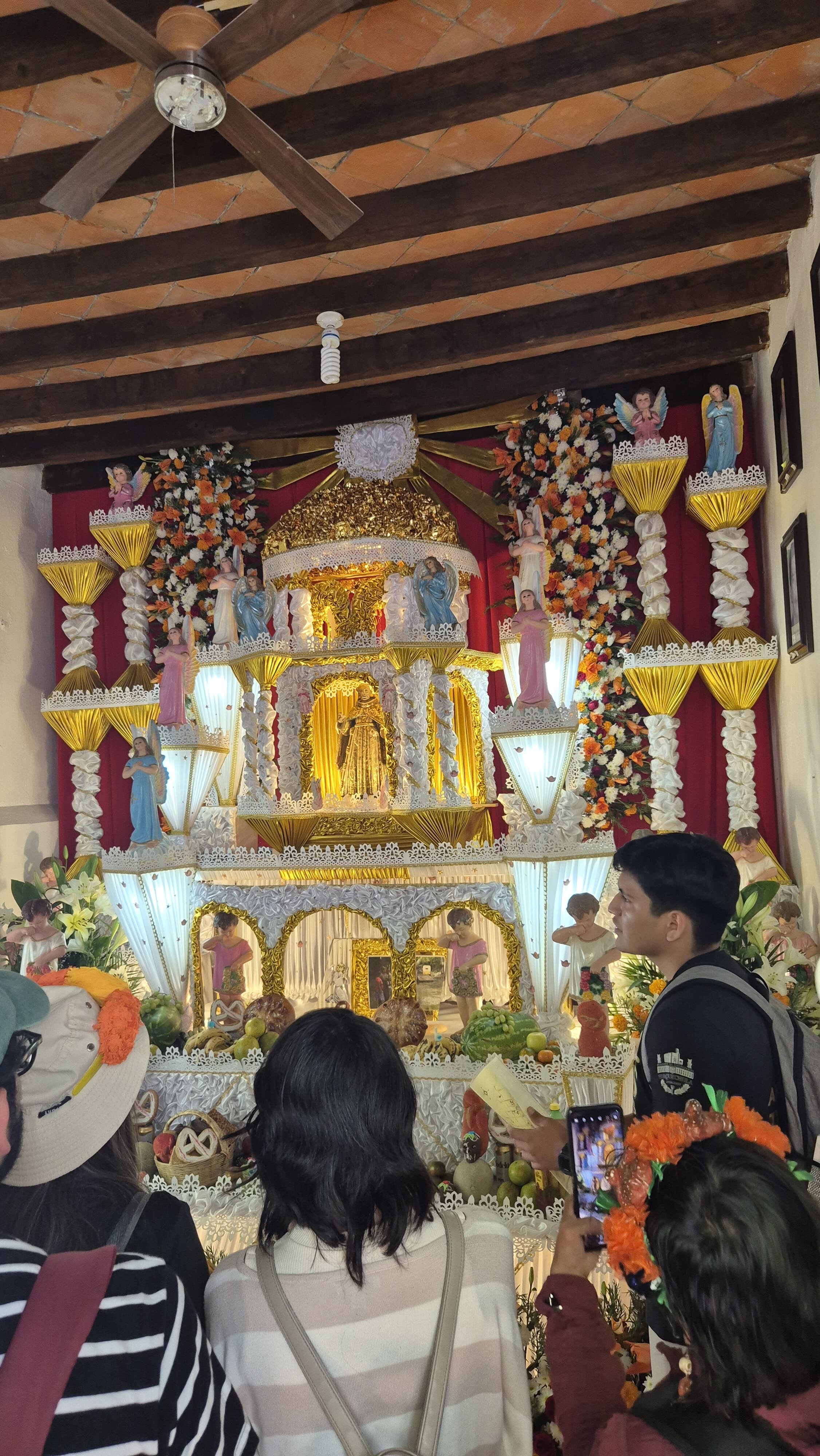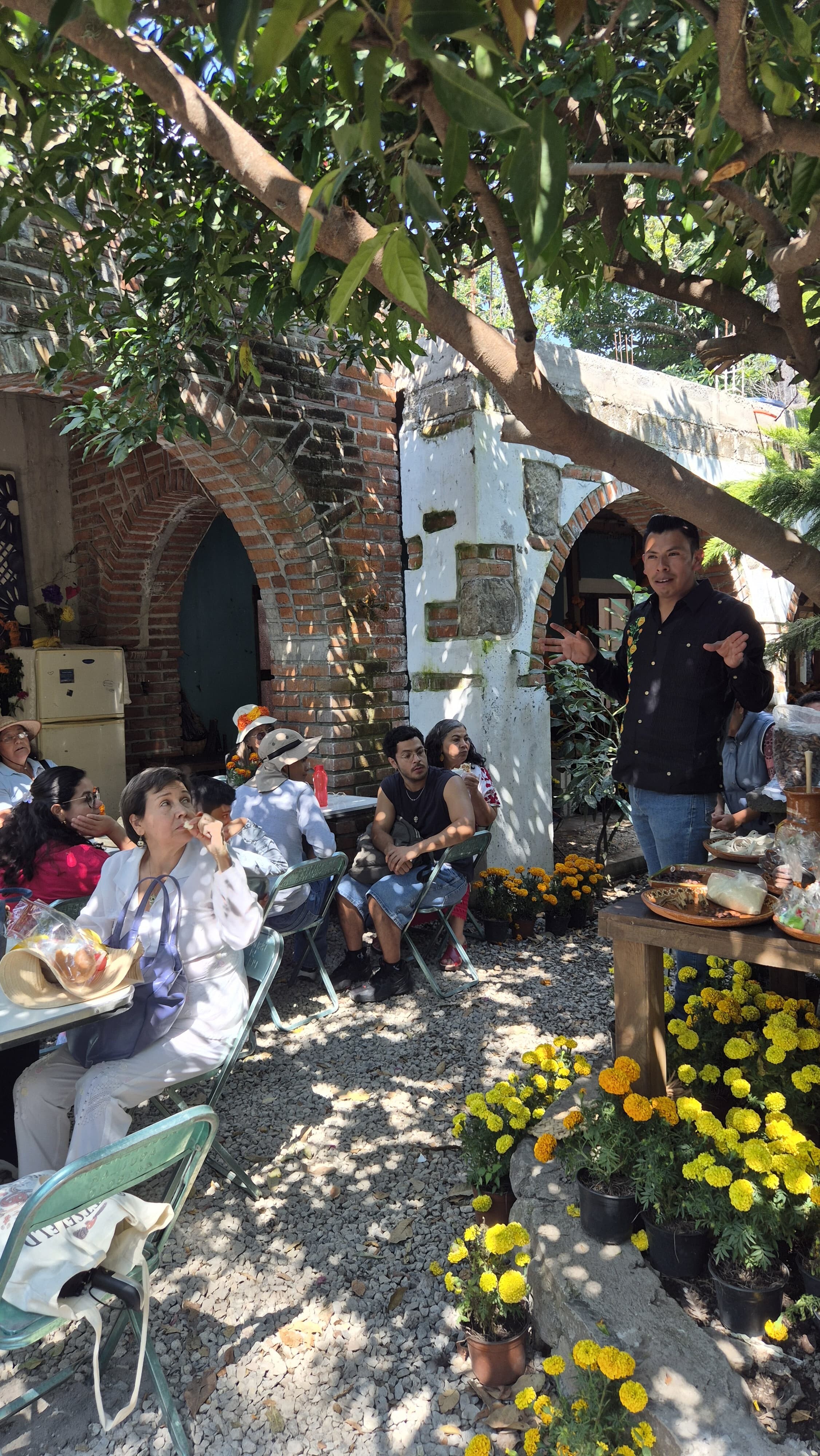 En 2025, el Museo Amparo organizó el Programa Puente para visitar los Altares Monumentales de Huaquechula. Durante esta actividad, los participantes recorrieron las diversas ofrendas del Día de Muertos del municipio. Además, tuvieron la oportunidad de ser parte del ritual de recibimiento de las ánimas, disfrutar de la presentación de los voladores de Cuetzalan y participar en un taller de tablillas de chocolate o alfeñique. Para concluir, se realizó una visita al Páramo de los Duendes. |